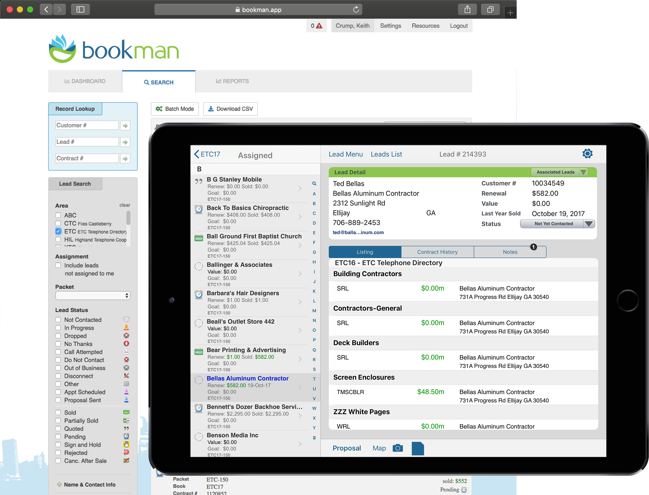 Sales reps can use interactive quotes, access area leads, last year’s contracts, current proposals, signed agreements, lead notes and customer artwork on their mobile device. No waiting to connect or buffering while data is downloading and can